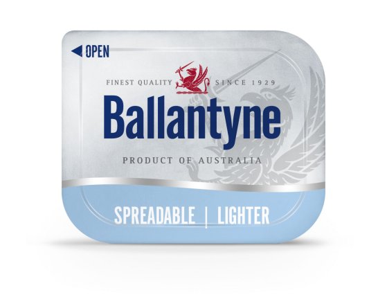 Ballantynes Spreadable Lighter portions provide a smooth, easy-to-spread texture with reduced fat content. Suitable for breakfast service, catering, and portion control.
